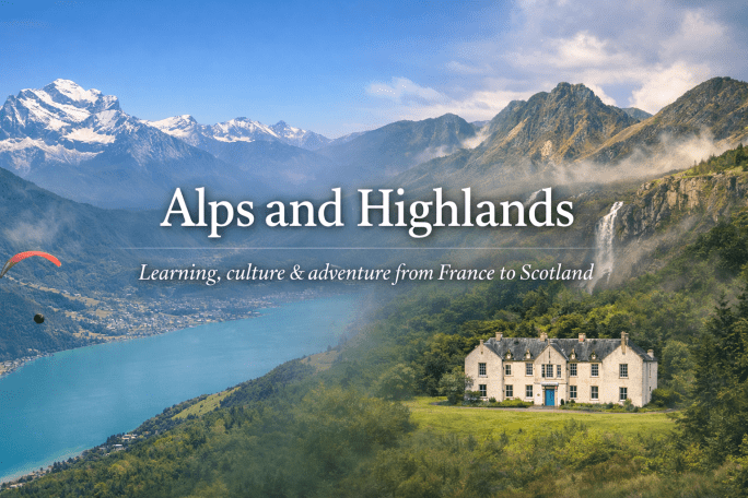 In English and French-speaking pairs, communicate, connect and dare to make mistakes together, improving your linguistic, cultural and alpine agility in the Scottish Highlands or French Alps.