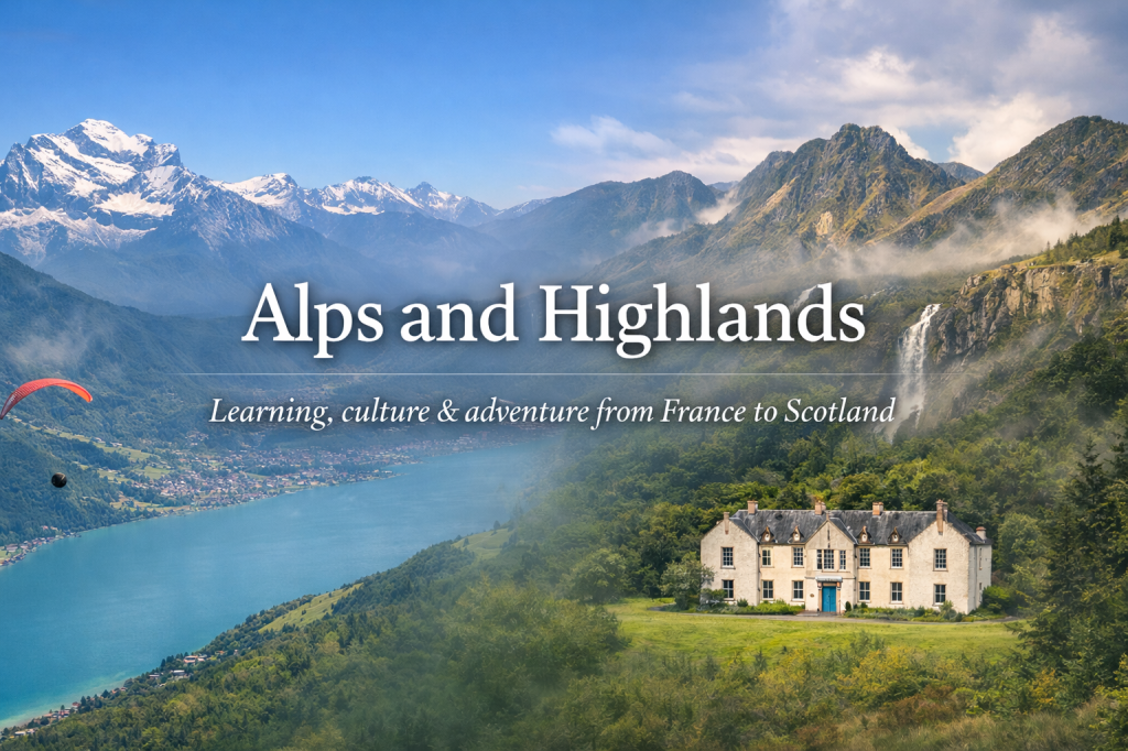 At Mountain Language Exchange, we believe that language learning should be more than lessons — it should be an unforgettable adventure. That’s why we’ve created a unique bilingual experience that spans two of Europe’s most spectacular landscapes: the soaring peaks and turquoise lakes of the French Alps, and the rugged glens and ancient forests of the Scottish Highlands.